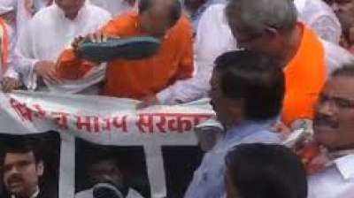 मुंबई । महाराष्ट्र के कोल्हापुर में छत्रपति शिवाजी महाराज की मूर्ति गिरने के विरोध में आज रविवार को महाविकास अघाड़ी मुंबई में प्रदर्शन कर रही है। इसे जोड़े मारो (जूता...