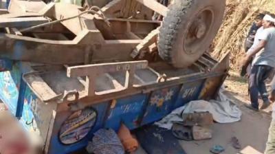 श्रद्धालुओं से भरी ट्रैक्टर-ट्रॉली पलटी, महिला और युवती की दबकर मौत, बच्चों समेत 18 घायल