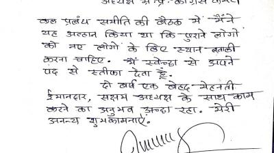 मीडिया विभाग के अध्यक्ष पद से दिया इस्तीफा