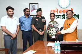 रायपुर । मुख्यमंत्री को सशस्त्र सैन्य समारोह में शामिल होने दिया गया आमंत्रण रायपुर में आगामी 05 और 06 अक्टूबर को आयोजित होने वाले सशस्त्र सैन्य समारोह में शामिल होने का भारतीय सेना के ब्रिगेडियर अमन आनंद और कलेक्टर डॉ. गौरव सिंह ने आमंत्रण दिया। इस अवसर पर नगर निगम आयुक्त अबिनाश मिश्रा एवं सीईओ जिला पंचायत विश्वदीप भी उपस्थित थे। मुख्यमंत्री को रायपुर में आगामी 5 और 6 अक्टूबर को होने वाले सशस्त्र सैन्य समारोह में शामिल होने के लिए आमंत्रित किया गया है। यह आमंत्रण भारतीय सेना के ब्रिगेडियर अमन आनंद और कलेक्टर डॉ. गौरव सिंह द्वारा दिया गया।