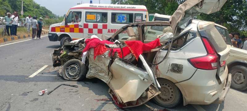 कुशीनगर। उत्तर प्रदेश के कुशीनगर जनपद में रविवार को एक दर्दनाक सड़क हादसा हो गया, जिसमें चार श्रद्धालुओं की मौके पर ही मौत हो गई, जबकि दो अन्य गंभीर रूप से घायल हो गए। हादसा पटहेरवा थाना क्षेत्र अंतर्गत बगही कुट्टी के पास एनएच-28 पर उस समय हुआ जब श्रद्धालुओं से भरी अर्टिका कार सामने से आ रहे ट्रैक्टर से आमने-सामने टकरा गई।