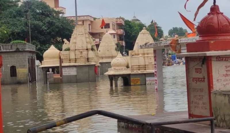 उज्जैन में शिप्रा नदी में मंदिर डूबे