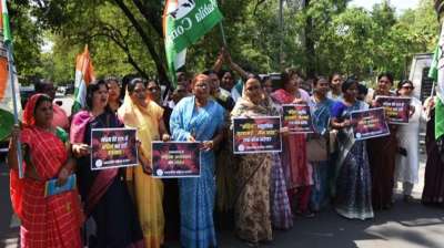 भोपाल: महिलाओं के खिलाफ बढ़ते अपराधों के खिलाफ महिला कांग्रेस का विरोध प्रदर्शन