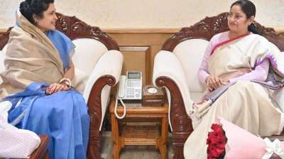 भोपाल : केन्द्रीय महिला एवं बाल विकास मंत्री अन्नपूर्णा देवी से पिछड़ा वर्ग एवं अल्पसंख्यक कल्याण राज्यमंत्री स्वतंत्र प्रभार कृष्णा गौर ने नई दिल्ली स्थित उनके कार्यालय में सौजन्य भेंट...