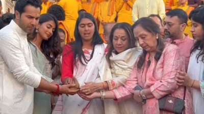 'हैं जवानी तो इश्क होना है' की शूटिंग के लिए ऋषिकेश पहुंचे वरुण और पूजा